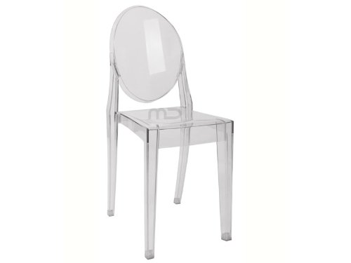 Product DescriptionThe Victoria Ghost Chair's fluid, serene design allows it to be used for residential or commercial. Made of transparent acrylics, the chair is sturdy and durable even as it displays a delicate, ethereal appearance. This versatile side chair is suitable for indoor and outdoor use. Features * Item Ships Small Package Carrier * Acrylic * Height: 38" * Width: 16.5" * Depth: 17 * Seat height: 19" Chairs sold in sets of Two (2).