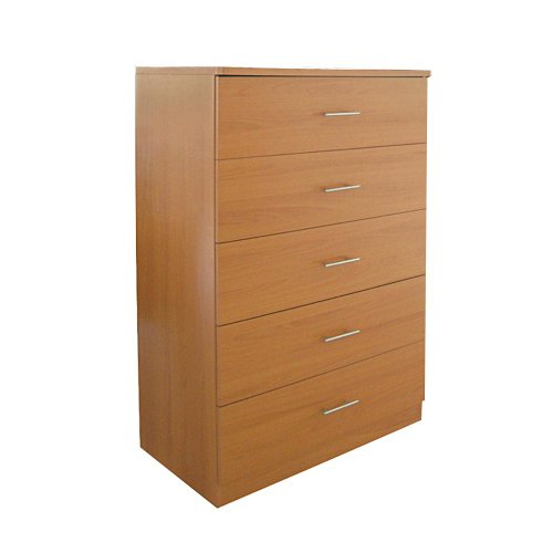 This five drawer jumbo cherry chest offers spacious storage and a sophisticated design. This-piece makes clothing, personal items, and bedding accessories easy to access. The spacious top can used to display jewelry boxes, family photos, and various bedroom decor. The cherry finish is sure to add a touch of refined elegance to any room. Made with durable wood composite, this-piece is easy to assemble and appreciate.